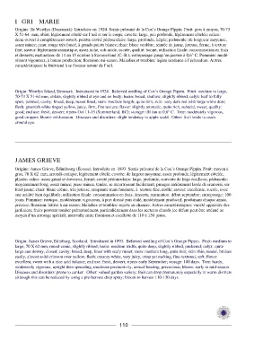 Origine: James Grieve, Édimbourg (Écosse). Introduite en 1893. Semis présumé de la Cox’s Orange Pippin. Fruit: moyen à