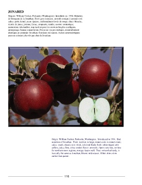de bourgeon de la Jonathan. Fruit: gros à moyen, arrondi-conique à arrondi-ové;