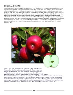 Origine: Laxton Bros., Bedford (Angleterre). Introduite en 1923. James Grieve x Worchester Pearmain. Fruit: uniforme, de