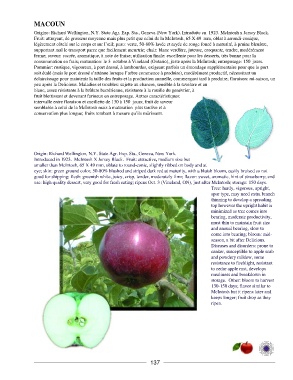 use: high quality dessert, very good for fresh eating; ripens Oct. 3 (Vineland, ON), just after McIntosh; storage: 150 days.