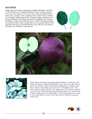 très résistante au blanc. Autres caractéristiques: pommier de type McIntosh; fruit