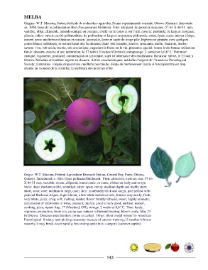 finale: desserts, cuisine et jus; maturation: le 17 août à Vineland (Ontario); entreposage: 2 semaines à 0,6° C. Pommier: