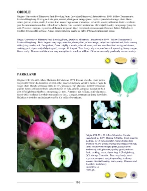 Origine: C.R. Ure et H. Allen, Manitoba. Introduite en 1979. Rescue x Melba. Fruit: petit à