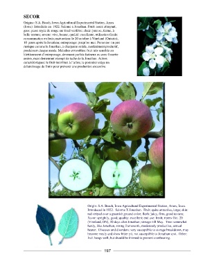 (Iowa). Introduite en 1922. Salome x Jonathan. Fruit: assez attrayant,