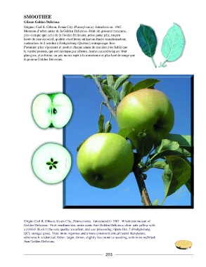 Golden Delicious. Fruit: medium size, more conic than Golden Delicious; skin: pale yellow with