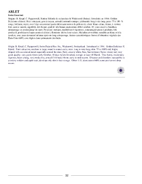 fine; saveur: sucrée, aigrelette, très bonne; qualité: très bonne; maturation: début octobre, 10 jours avant la Jonathan;