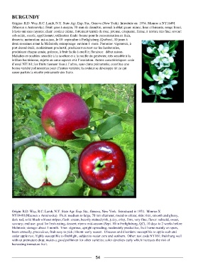 NY18491(Macoun x Antonovka). Fruit: medium to large, 70 mm diameter, round to oblate; skin: thin, smooth and glossy,