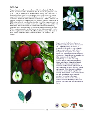 Russie. Introduite en 1917. Pollinisation libre, M. baccata, M. prunifolia. Fruit: