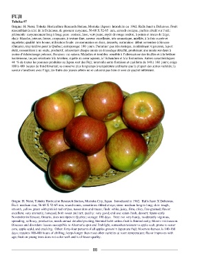 44 % de toutes les pommes produites au Japon sont des Fuji; intervalle entre floraison et cueillette de 140 à 160 jours; exige