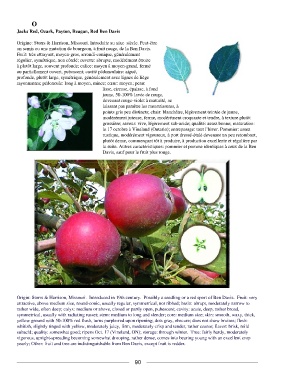 subacid; quality: somewhat good; ripens Oct. 17 (Vineland, ON); storage: through winter. Tree: fairly hardy, moderately