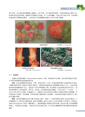 症状 病原菌能够侵染匍匐茎、叶柄、果实和叶片。夏季,在匍匐茎和叶柄上出现暗色的小病斑,