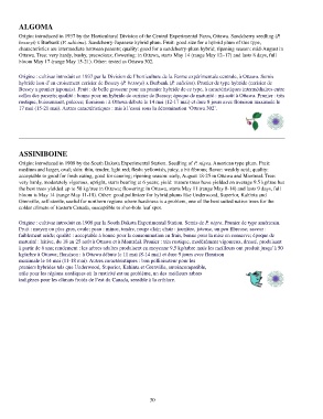 celles des parents; qualité : bonne pour un hybride de cerisier de Bessey; époque de maturité : mi-août à Ottawa. Prunier : très
