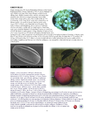 rendement : 1,6 à 68,8 kg/arbre avec une moyenne de 6,6 kg/arbre à Ottawa; floraison : à Ottawa débute le 11 mai et dure 10