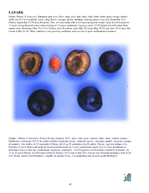 Origine : Ottawa. P. domestica. Prunier de type européen. Fruit : gros, ovale; peau : épaisse, bleue; chair : ambrée, juteuse,
