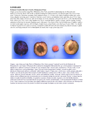 Origin: grown from seed by Judge Platt, Whitesboro, New York, named the Lombard plum by the Massachusetts