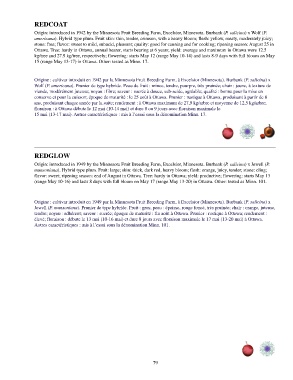 conserve et pour la cuisson; époque de maturité : le 25 août à Ottawa. Prunier : rustique à Ottawa, produisant à partir de 6