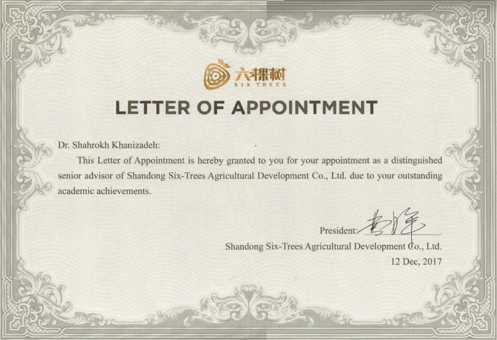 Honorary appointment, guest Professor of Beijing Engineering Research
